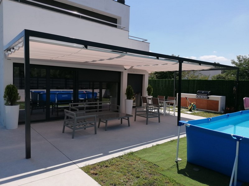 La seva estructura i els seus braços (plegables o telescòpics) permeten pujar i baixar la lona, de forma manual o motoritzada.