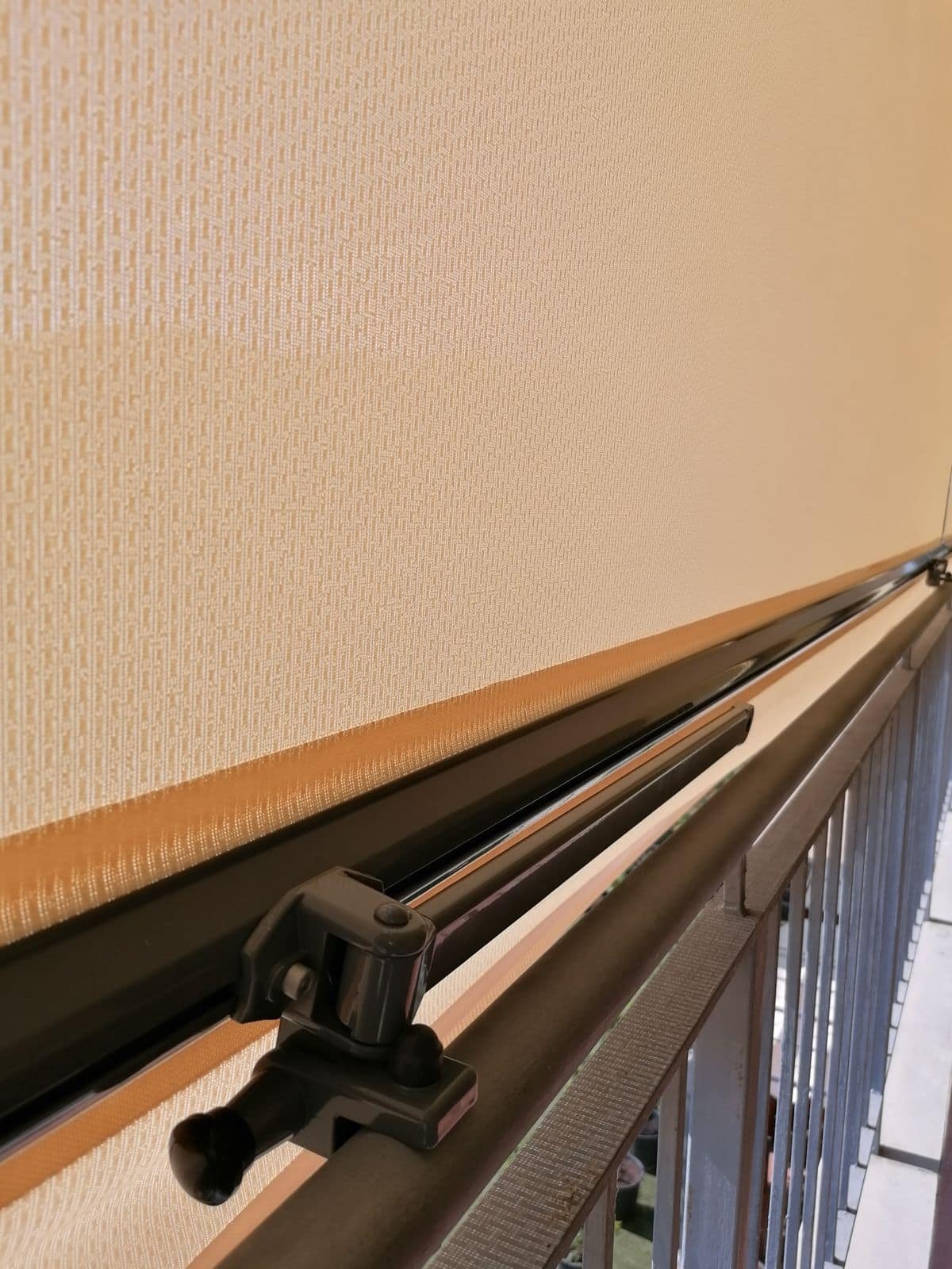 1. Amb el braç estès, enganxant-los a la barana de manera que el tendal ens en queda separat (50 cm), deixant passar l'aire per a una millor ventilació, i alhora ens protegeix del sol.